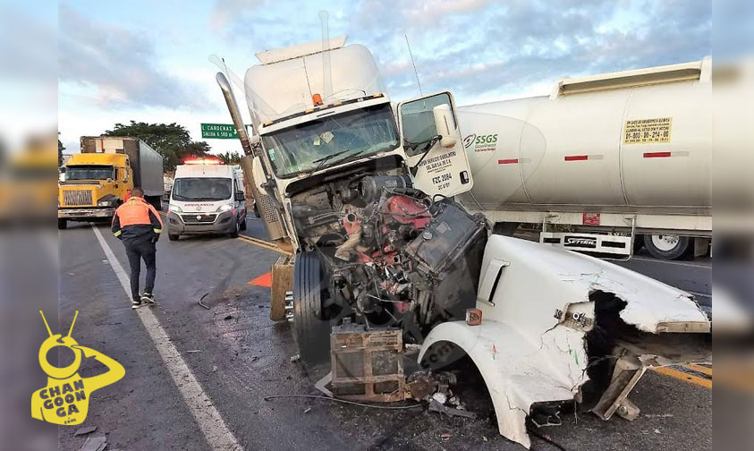 Poco antes de llegar a la desviación a Uruapan, fue impactado por una pipa, con razón social de Súper Servicio Gasolineras del Sur, de Tacámbaro, y un tráiler con caja metálica y placas, 64-UB-3B del servicio público federal.