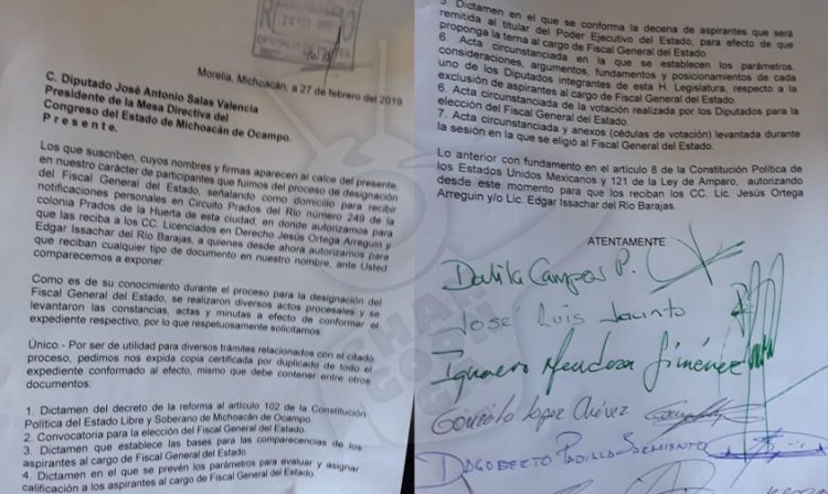 Momento tenso se vivió en el congreso local donde en se presentaron los aspirantes a Fiscal General de Michoacán, quienes presentaron un documento para impugnar el proceso de la designación del Fiscal.