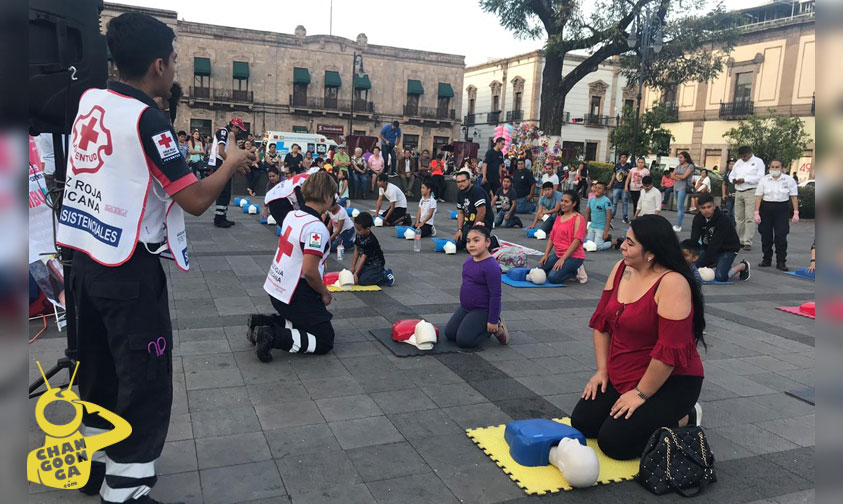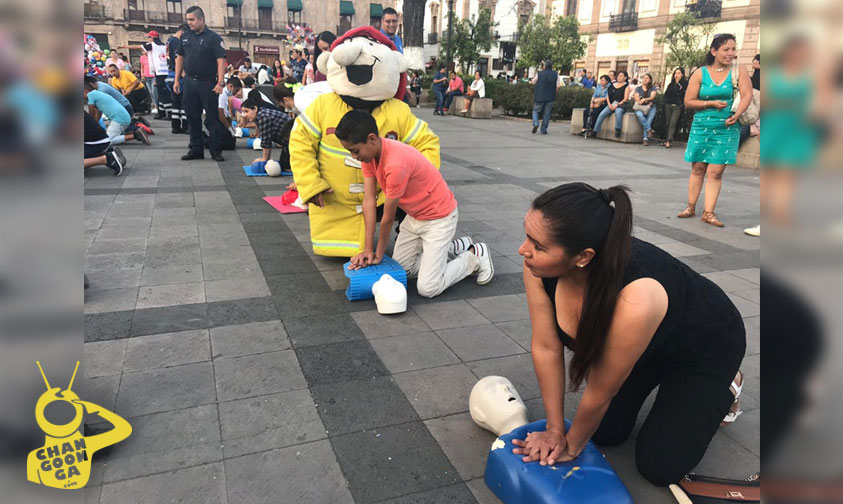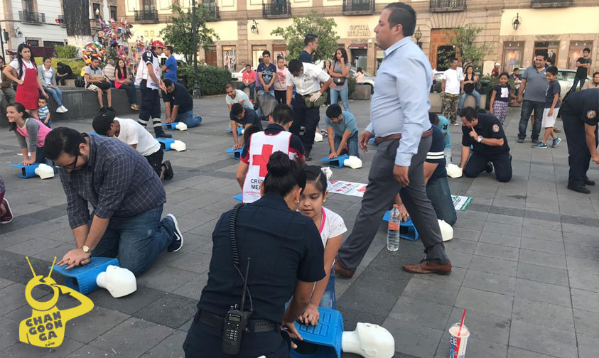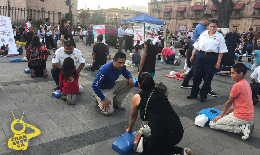 La coordinación municipal de Protección Civil en conjunto con la Cruz Roja, Bomberos delegación Michoacán, Bomberos Voluntarios de Michoacán, personal de Medicrit, Umedic y Ambumed, realizan talleres para enseñar primeros auxilios de manera rápida y eficaz en la plaza Melchor Ocampo.