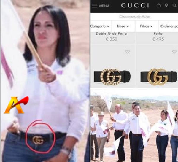 Y para no desmerecer dicho cargo, cuya responsabilidad es acabar con las llamadas “escuelas de palitos” y de dotar de espacios dignos (aulas, baños, áreas recreativas) a los estudiantes michoacanos, la funcionaria suele presumir su cinturón marca Gucci de 790 euros (unos 17 mil 285 pesitos a cómo está la cotización hoy) en actos públicos.