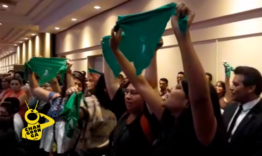 Al tomar la palabra contó como su madre no estudió porque su abuelo se lo impidió porque el camino para acudir a la secundaria no era seguro, así mismo hizo un recorrido por los derechos atropellados a las mujeres ante lo que exigió «Aborto Libre Y Seguro», además de exigir justicia para los feminicidios.