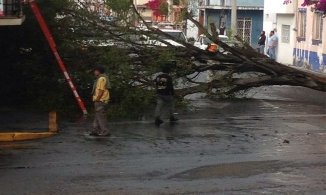 Personal de dicha Dirección, informa que se recibió el reporte de un árbol de ocho metros en la calle Colima esquina con Guerrero de la colonia Molino de Parras; dos árboles en Calzada la Huerta frente a Protección Civil del Estado; un árbol dentro del Parque 150 así como otro en la Escuela Secundaria No. 8 que se encuentra en Santa María de Guido, donde detallan que se cayeron ramas peligrosas.