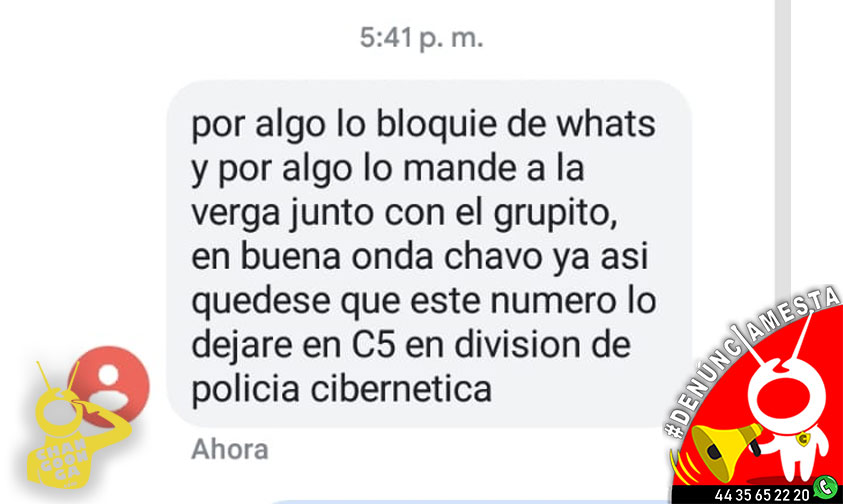 “No sé cuál fue la razón por la cual este tipo se molestó y me empezó a mensajear y a decir que me quemaría, que era policía, que cuidara a mis hijos, que mi teléfono lo mandó registrar al C5 y una sarta de boberías, pero siempre escudándose en que es Policía Michoacán”, asegura el denunciante.