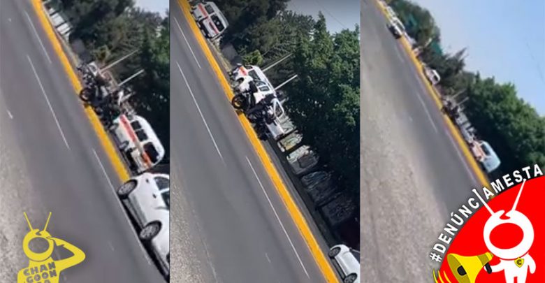 #Denúnciamesta A policía se le atora la moto por cruzar a carril contrario por camellón