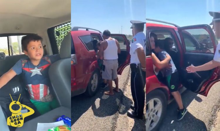 Circula un video en redes sociales en donde luego del incidente, la policía federal subió al pequeño a una patrulla para corretear a los autos donde viajaban los familiares del niño, con el fin de entregar al niño.