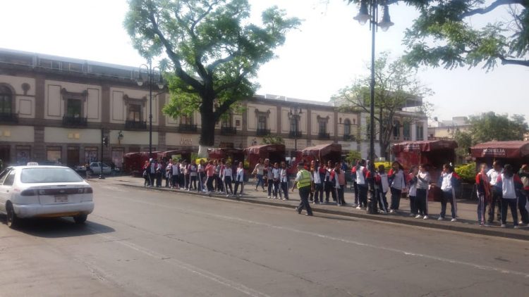 Con el objetivo de garantizar el orden, la Secretaría de Seguridad Pública (SSP), desplegó personal para vigilar los alrededores de la Plaza Melchor Ocampo, ubicada en el primer cuadro de la capital michoacana, ante la manifestación de un grupo de estudiantes.