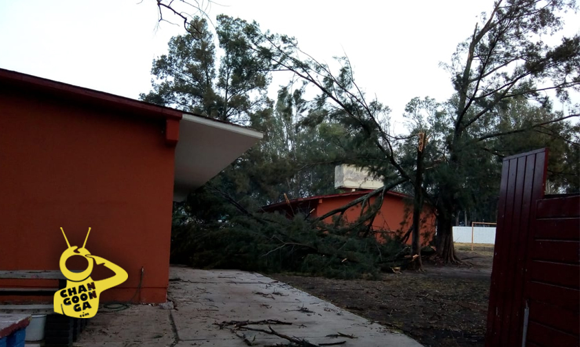 Varios árboles se desprendieron desde la raíz y cayeron sobre las aulas, por fortuna no se encontraban personas al interior.