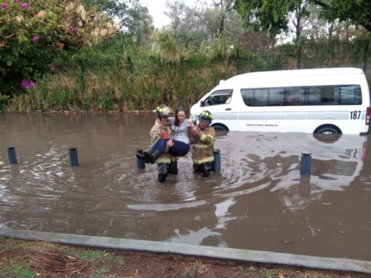 Tras la fuerte lluvia que azotó la capital michoacana, la escuela Primaria Madero Pino Suárez suspendió labores, debido a que el agua llegó a altos niveles del suelo.