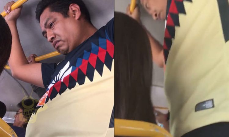 La chica narró que este 8 de junio a las 12:00 horas, el sujeto con playera del América, se subió al autobús donde viajaba, de la ruta 64C en San Jerónimo, y a pesar de que había mucho espacio, se quedó parado frente a ella.