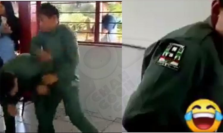 En la videograbación se logra ver a los dos jóvenes, soltándose puñetazos, en el uniforme de uno de ellos se logra a ver el escudo de la institución.