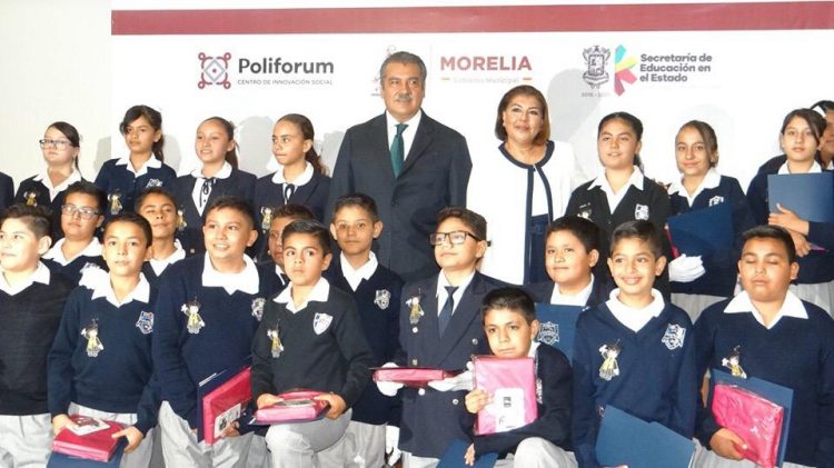A su llegada, junto con su esposa Rosalba Vidal de Morón, el presidente municipal de Morelia fue recibido por la titular del Poliforum, Omega Vázquez, y se dirigió al encuentro con los estudiantes de educación básica, los cuales estaban acompañados de sus padres.