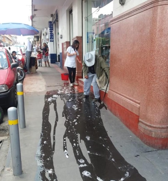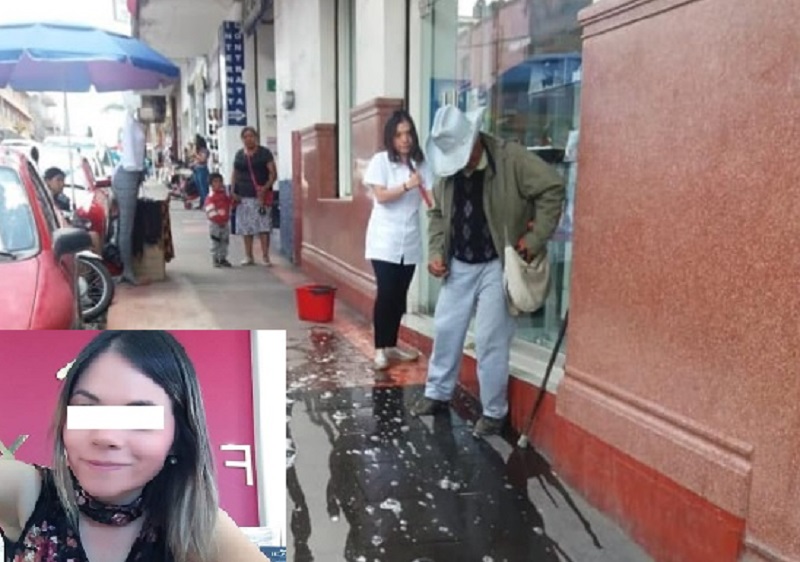 Según versiones de gente que presenció el acto, la mujer, quien al parecer no sólo es empleada sino dueña del establecimiento, argumentando que iba a limpiar la banqueta, salió con cubeta de agua en mano para arrojarla a un escalón directamente a donde el anciano estaba sentado frente a la vitrina de la óptica, para hacer que se levantase en el acto y abandonara el lugar.