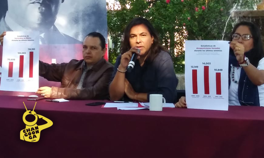 A lo anterior agregó que la situación comenzó con el gobierno del panista Vicente Fox, y que la situación se recrudeció en el gobierno de Felipe Calderón, pues dejó 102 mil muertos y mas de 14 mil desaparecidos y recordó que en su mandato se dio el primer ataque terrorista en el centro de Morelia, señaló que en el anterior gobierno de Peña Nieto hubo 118 mil homicidos.