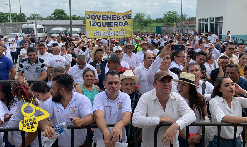 Con lonas pancartas y gritos de aliento los asistentes mostraron su simpatía con el mandatario estatal al expresar al unísono:
