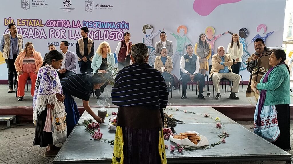 Mientras que el jefe del centro Universitario Intercultural Indígena de Michoacán, (UIIM) , Pablo Sebastián Felipe, dió un mensaje en purépecha alusivo al día estatal contra la discriminación recalcando que la casa de estudios de los pueblos originarios, tiene como objetivo ofrecer formación superior sin discriminación y atiende sin diferencia a jóvenes discapacitados o con capacidades diferentes