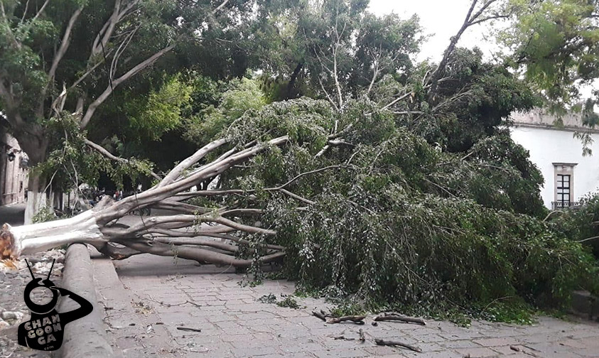 Un fuerte viento, registrado la tarde-noche de este miércoles, derribó un árbol en la Calzada San Diego, ubicada en el Centro Histórico de la ciudad de Morelia; por fortuna no hubo lesionados.
