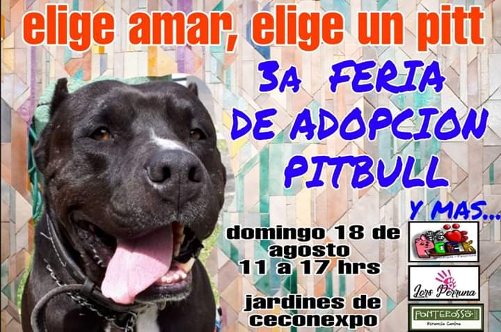 Este domingo en el área jardinada del Centro de Convenciones y Exposiciones (Ceconexpo) se llevará a cabo, de las 11 a las 17 horas la Tercera Feria de Adopción de Pitbull.
