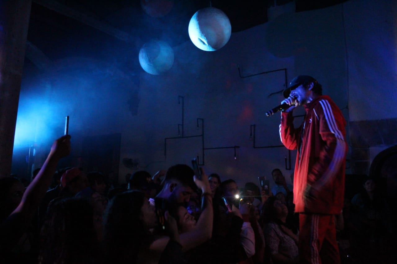 Antes de iniciar el show la gente ya comenzaba a bailar y a mover el cuello como perrito de tablero de taxista con la música del bar y aunque este no se encontraba lleno en su totalidad, una cantidad considerable de morelianos ya esperaba con ansias al rapero.