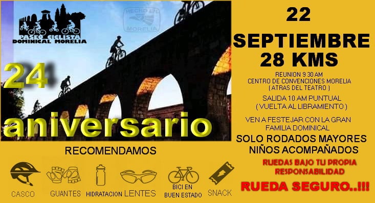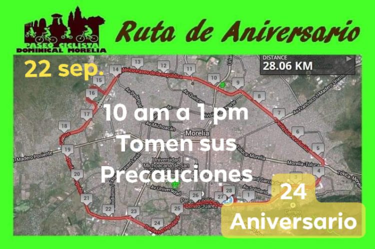 De acuerdo con la convocatoria que se ha difundido a través de redes sociales, el motivo del cierre de una de las principales arterias viales de Morelia, es el 24 aniversario de este tradicional paseo dominical sobre ruedas.