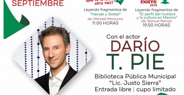 Este 26 de septiembre el actor de cine, teatro y televisión, Darío T. Pie, se presentará en Uruapan dentro de los programas “Quieres Que te lo Lea Otra Vez” y “Leo… Luego Existo”, del Instituto Nacional de Bellas y Literatura (INBAL), comunicó la titular de la Secretaría de Turismo y Cultura, Alejandra García Ayala.