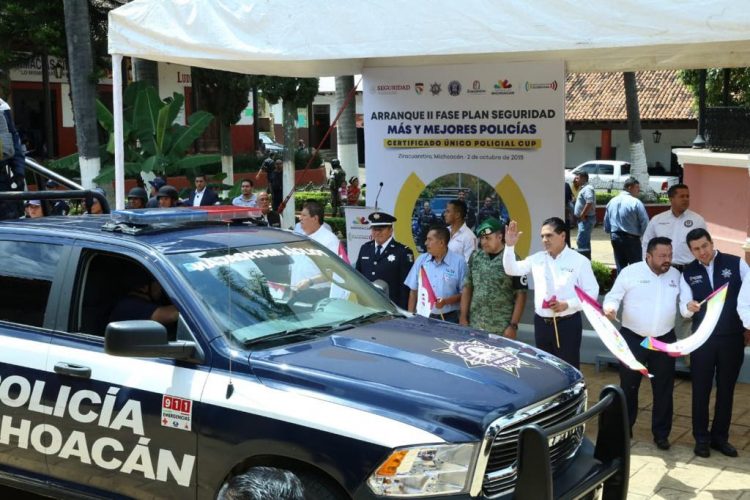 Durante el arranque de la II Fase del Plan de Seguridad Más y Mejores Policías en el municipio de Ziracuaretiro, Aureoles Conejo afirmó que las tareas de su administración están enfocadas en garantizar la seguridad de todas y todos los michoacanos.
