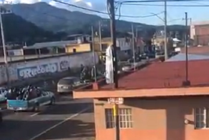 La advertencia va acompañada de un video donde se observa el desfile de una caravana de camionetas con hombres supuestamente armados circulando por la localidad a manera de patrullaje.