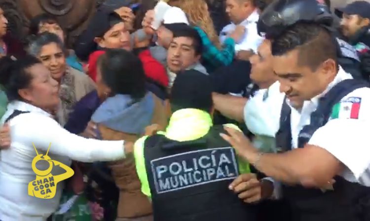El momento se puso tenso, ya que entre los jaloneos que tuvieron los municipales con los manifestantes hicieron que señoras cayeran al piso, otros acusaban haber sido golpeados por los policías mostrando lo inflamado de su boca.