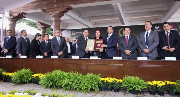 Los galardones, uno en vida y otro post mortem, fueron entregados por el Gobernador del Estado, Silvano Aureoles Conejo, y el Presidente Municipal de Uruapan, Víctor Manuel Manríquez González