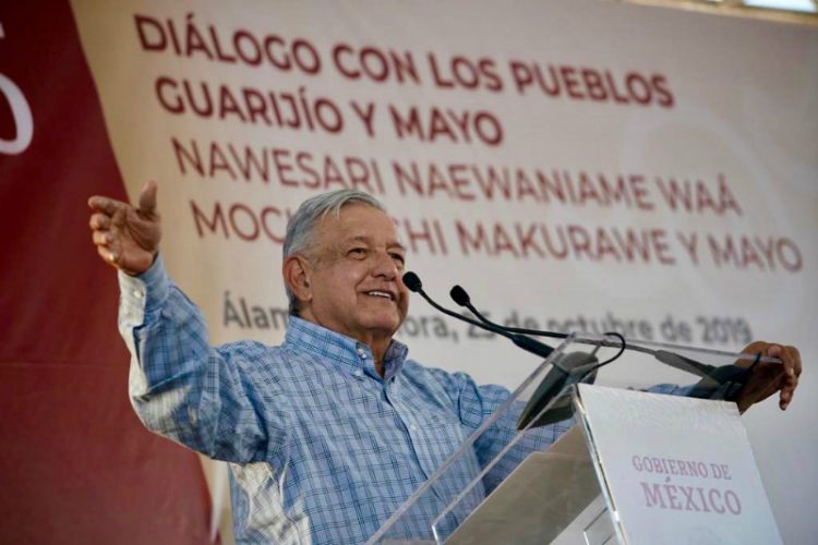 El Presidente Andrés Manuel López Obrador destacó la grandeza de las culturas indígenas, la cual no siempre ha sido valorada, durante un acto público con pueblos originarios de Álamos, Sonora.