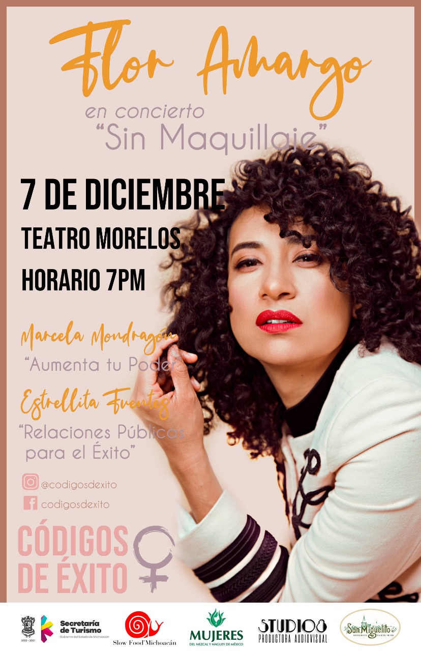 La cantante mexicana Flor Amargo se presentará en Morelia en el marco del evento Códigos de Éxito Woman que se llevará a cabo el sábado 7 de Diciembre a las 19:00 horas en el Teatro Morelos de esta ciudad capital.