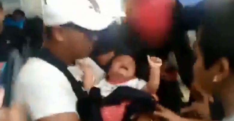 Los hechos se registraron en la Terminal 1 cuando los padres ingresaron con el menor en brazos sin imaginar que la Policía Federal lanzaría granadas con gas pimienta contra elementos de la Secretaría de Seguridad Ciudadana de la Ciudad de México (SSP-CDMX).