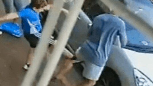 Una cámara de seguridad captó el momento en que un niño trató de defender a su mamá de un asaltante, en una calle de Bernal, en Buenos Aires, Argentina.