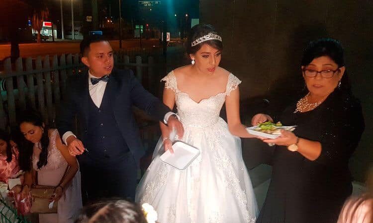 Los recién casados, quienes responden a los nombres de Lorena y Alejandro, repartieron comida y bebida sin cobrar ningún tipo de pago por los alimentos, ni pidiendo nada a cambio: