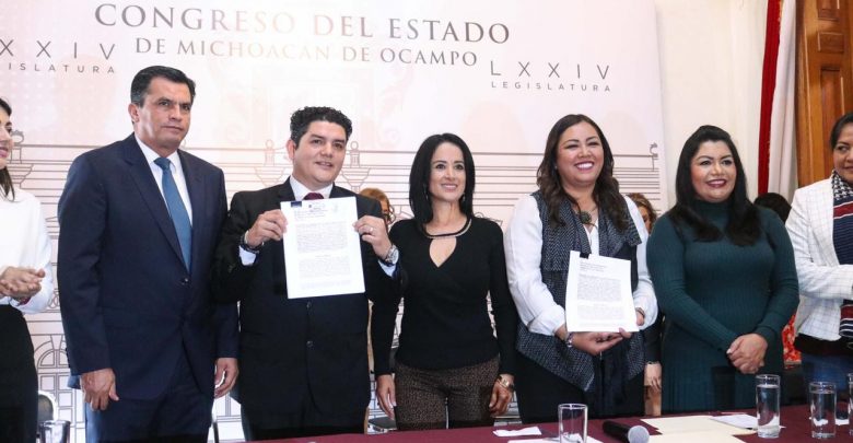 El diputado presidente de la Mesa Directiva del Congreso local, Antonio de Jesús Madriz Estrada recibió la Iniciativa ciudadana para sancionar la violencia política por razones de género, elaborada por el Observatorio de Participación Política de las Mujeres en Michoacán.