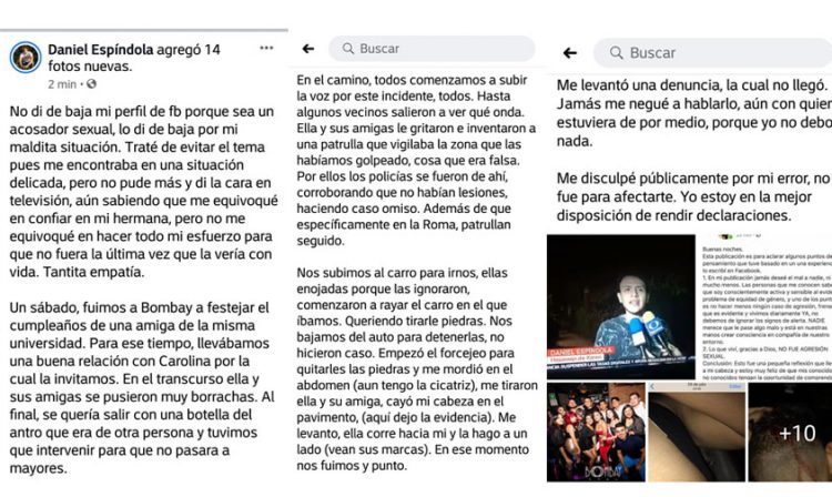 Así mismo el joven dio su explicación en su propio perfil el cual unas horas después y ante la mirada continua de los medios de comunicación dio de baja, en dicho post explicaba que él no tuvo ninguna culpa, que las agresiones fueron bilaterales y que incluso se quedó esperando la denuncia por parte de la joven agredida.