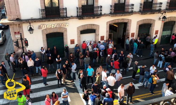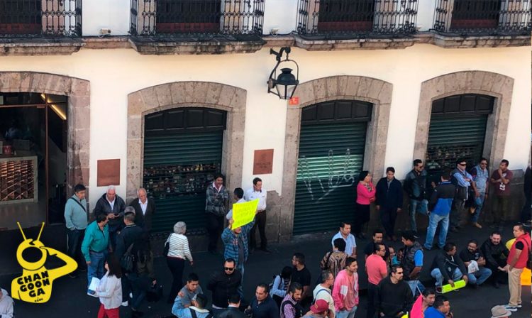 Transportistas que se manifiestan a las afueras del Congreso del Estado de Michoacán, mantienen un bloqueo sobre ambos carriles de la Avenida Madero, en el Centro Histórico de Morelia.