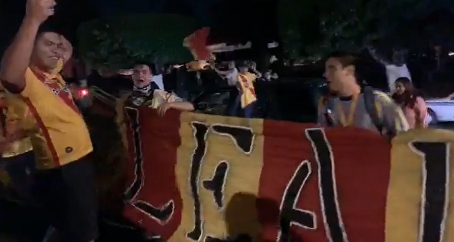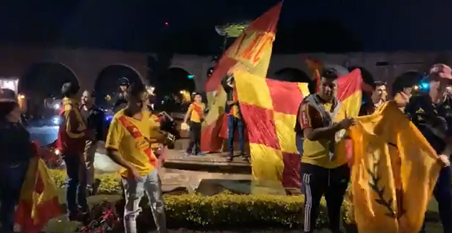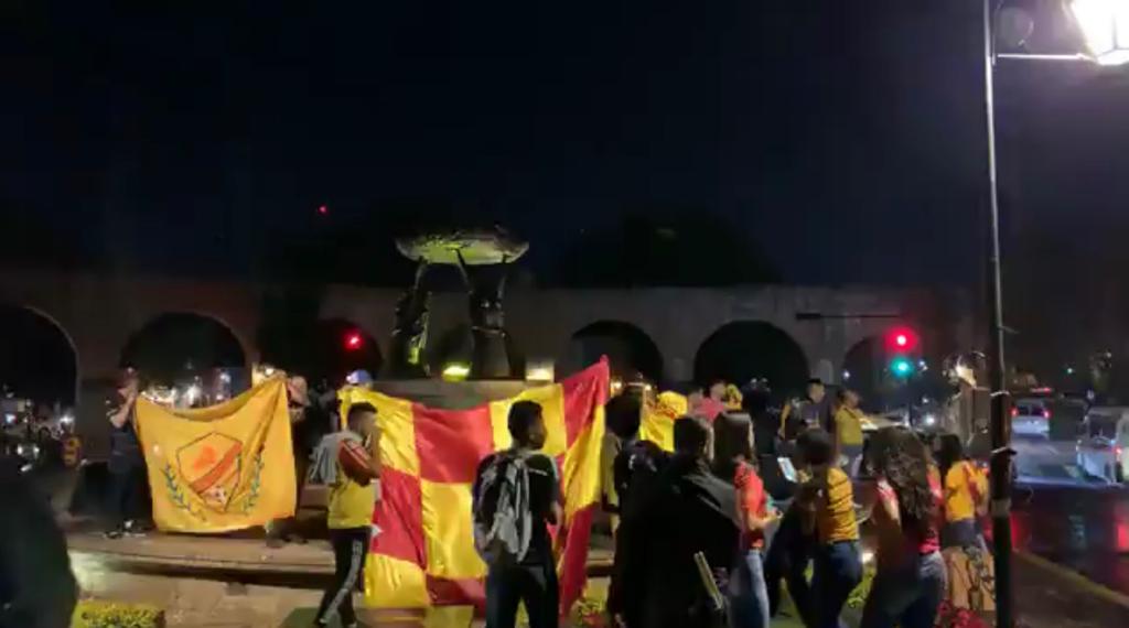 Alrededor de unos 200 aficionados del. Morelia, llegaron con la actitud en “las buenas y en las malas” al celebrar este resultado en contra de su equipo en las fuente de Las Tarascas de la capital michoacana.