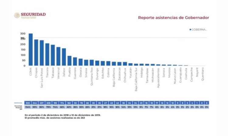 Los enunciados por el funcionario federal fueron los gobernantes de Querétaro, Campeche, Guanajuato, Tamaulipas, Michoacán, Aguascalientes, Guanajuato y Jalisco no asisten o se ausentan mucho en las reuniones que comienzan diariamente a las 6 de la mañana en Palacio Nacional.