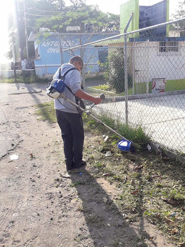Un joven estudiante de telebachillerato, utilizó los 2 mil 400 pesos que recibe por concepto de la beca para estudiantes “Benito Juárez”, para comprar una máquina desbrozadora y trabajar durante estas vacaciones cortando césped, y así generar recursos para poder solventar sus gastos del siguiente año escolar.