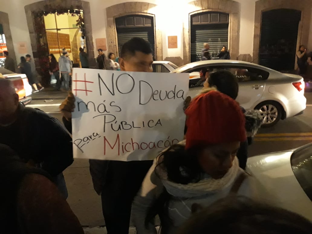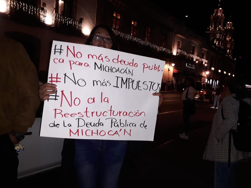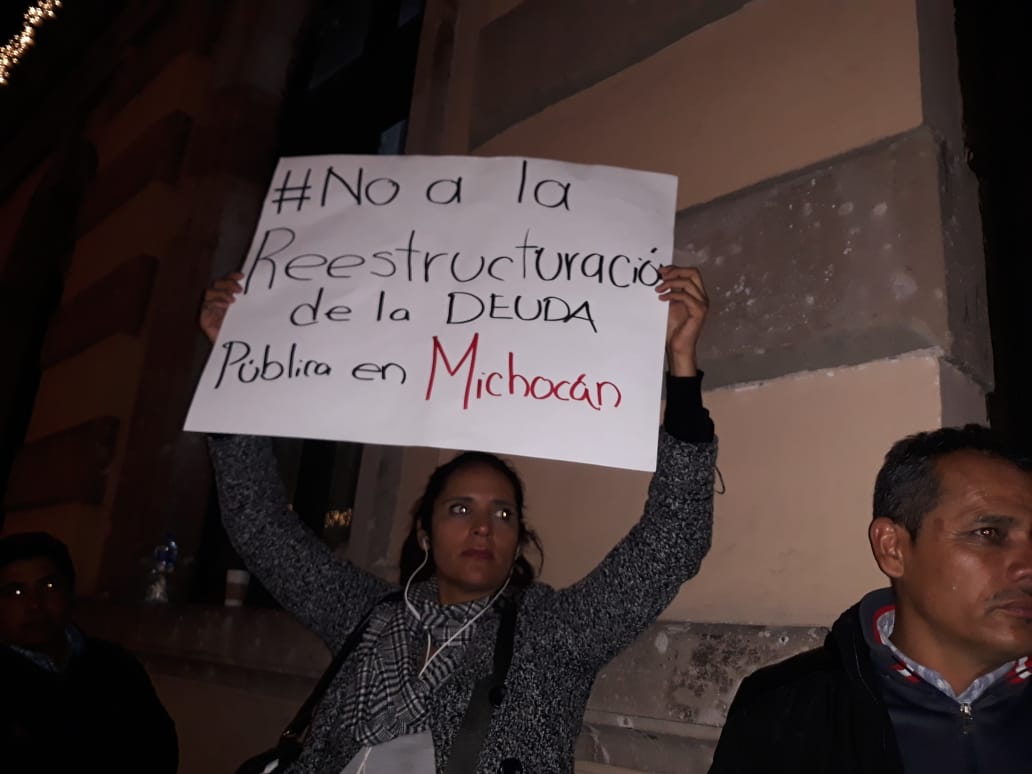 Un grupo de personas se colocó a fuera de palacio legislativo con pancartas a fin de protestar para que no se apruebe la deuda pública por más de 4 mil millones de pesos.