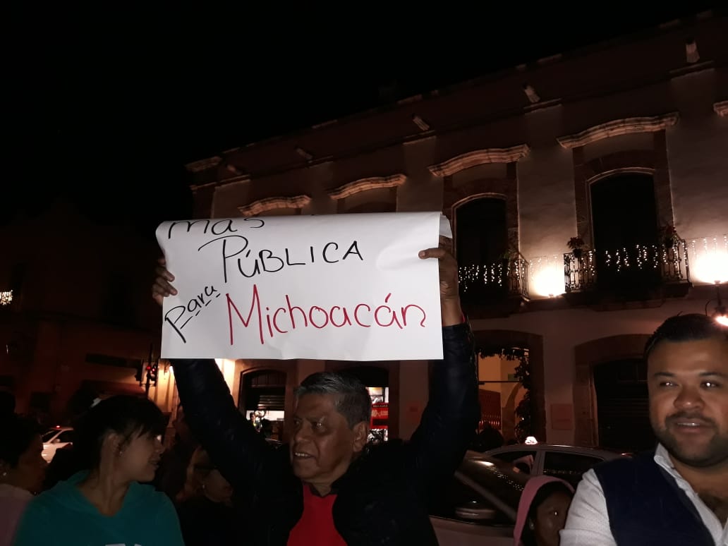 Los manifestantes se identificaron como parte de la comisión promotora de círculos de formación política en Michoacán, que lo conforman alrededor de 30 personas, varios de ellos militantes de MORENA .