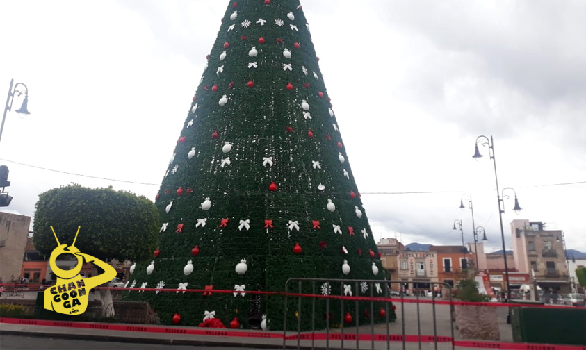 Las fuertes ráfagas de viento que se dejan sentir en Morelia, han causado el cierre de calles alrededor de plaza San Francisco, ante el riesgo de la caída del árbol navideño monumental.