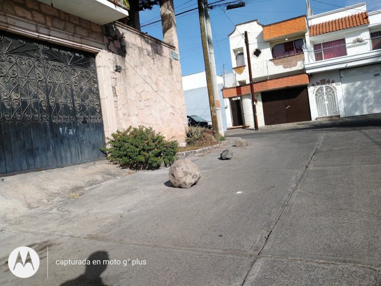 “La imagen muestra que la vivienda de la esquina lleva al menos 2 años con las piedras, sin que nadie la reporte, por que NO le gusta que se estacione”, señala la denuncia ciudadana.
