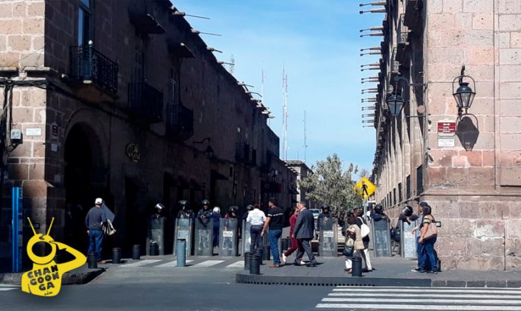 Maestros pertenecientes al Sindicato Nacional de Trabajadores de la Educación (SNTE) sección XVIII, mantienen bloqueado el primer cuadro del Centro Histórico de la capital michoacana, para pedir pago de los bonos atrasados.