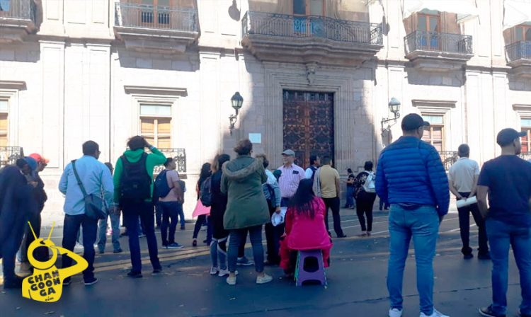 Afuera de Palacio de Gobierno hay un grupo de profesores que se mantiene firme en sus consignas, mientras otros amarraron a las rejas de Catedral una lona con un letrero.