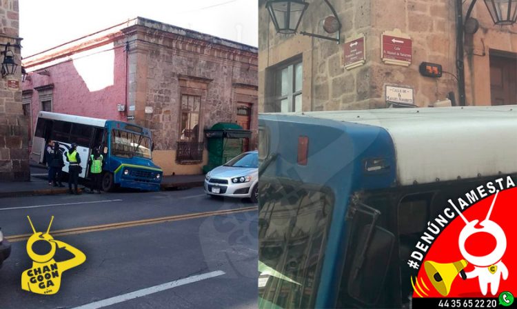 Un camión del transporte público de la ciudad de Morelia, se quedó averiado momentos antes de dar vuelta para incorporarse a la Avenida Madero, en el Centro Histórico de esta capital michoacana.