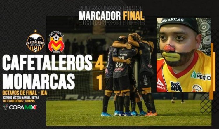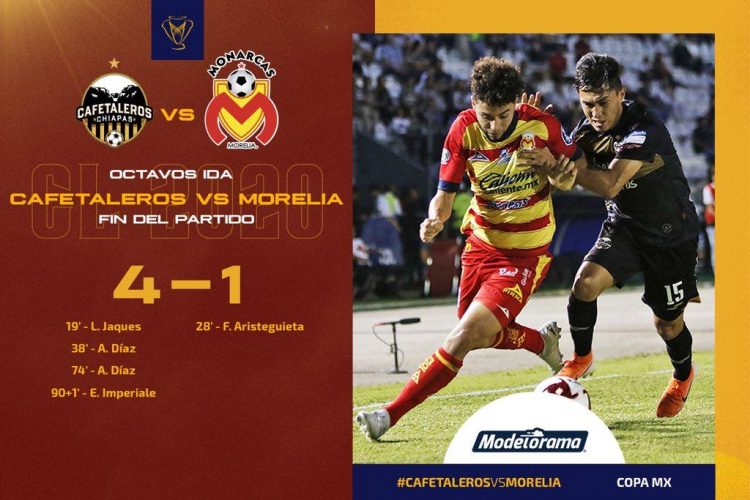 Con un equipo desdibujado, jugadores sin mucha garra y con muchos errores defensivos, un desconocido Monarcas Morelia visitó la cancha del Víctor Manuel Reyna para enfrentarse esta noche ante Cafetaleros en el partido de ida de los octavos de final de la Copa MX, acabando goleados de manera vergonzante.