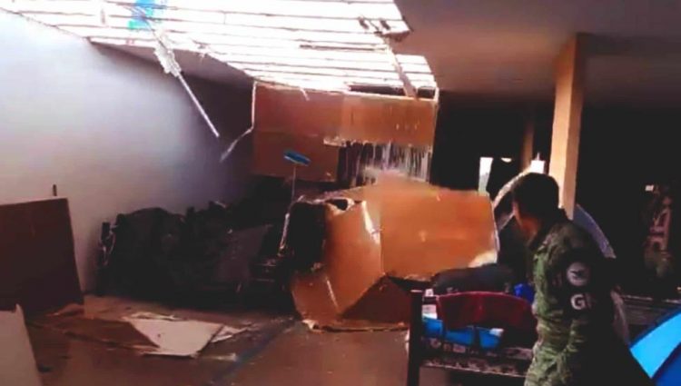 Las afectaciones en el lugar fue el desplome del techo de las instalaciones que por ser de tabla roca, al mojarse y agregando a esto los fuertes vientos se cayó, además, se puede ver como el agua entra a los dormitorios y comienza a mojar las camas, cobijas e incluso hasta la ropa de los elementos de seguridad.