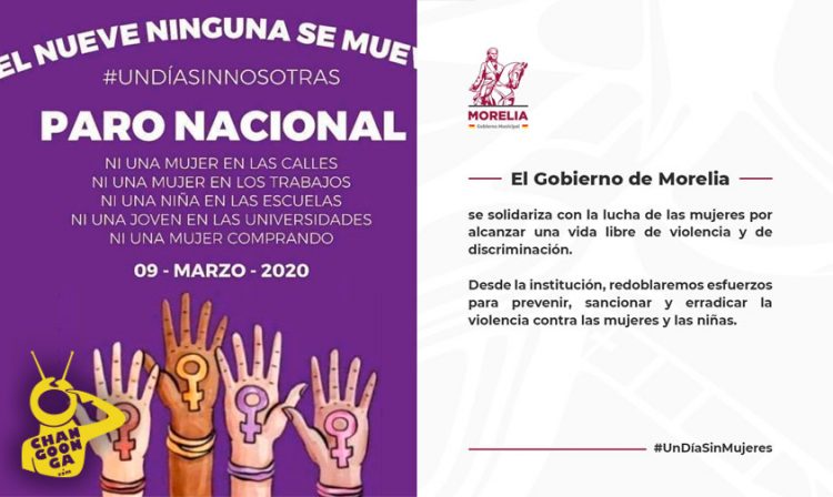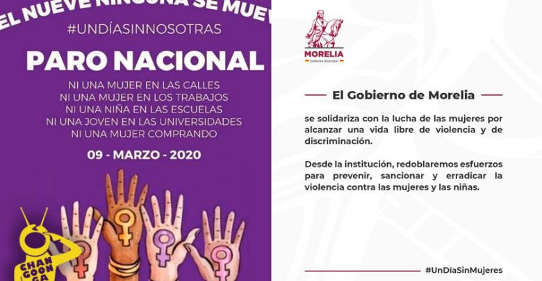 A través de redes sociales, el Ayuntamiento de Morelia mostró su solidaridad con el movimiento feminista del próximo 9 marzo, en el que se ha convocado a un paro nacional de mujeres, tanto en empresas, escuelas y dependencias gubernamentales.