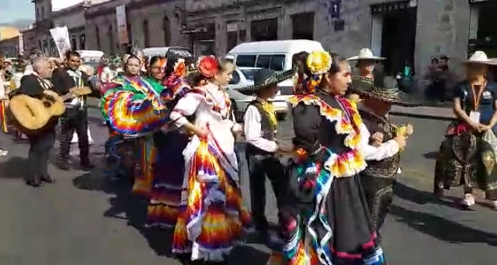 Chinas poblanas sonrientes, charros con porte recio y bigote pintado, “viejitos” huaracheros, sombreros de texana o de paja: La tarde de este jueves la avenida Madero vivió una muy colorida y rítmica marcha de al menos unos mil jóvenes y niños que participarán este fin de semana en el 5º Festival Infantil del Folclor Nacional Michoacán 2017.